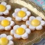 - Schep hoopjes op een bakplaat en druk met je duim of de achterkant van een lepel een kleine indruk in het midden om een nest te vormen. Bak 12–15 minuten tot de randen licht goudbruin zijn. Laat volledig afkoelen.