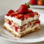 Dit recept draait om twee hoofdrollen: romige instant puddingmix (cheesecake of vanille) en sappige verse aardbeien. Het grootste voordeel? Je hoeft de oven niet aan te zetten — ideaal voor warme dagen en snelle etentjes. Voor thuiskoks en beginners is het perfect omdat de techniek simpel is: pudding aanmaken, slagroom vouwen en lagen bouwen. Blijf even doorlezen; ik deel tips zodat je taart stevig blijft, mooi snijdt en er aantrekkelijk uitziet.